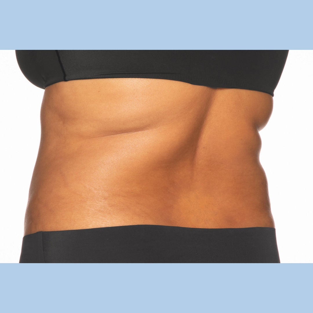 *Gjennomsnittlig fettreduksjon etter 6 måneders oppfølging på kroppsområder, inkluderte mage (20 %), rygg (22 %), hofter (25 %), innerlår (17 %) og innerside av knær (18 %). Gjennomsnittlig fettreduksjon alle områder etter 6 måneder var 21,5 % (n=55).1